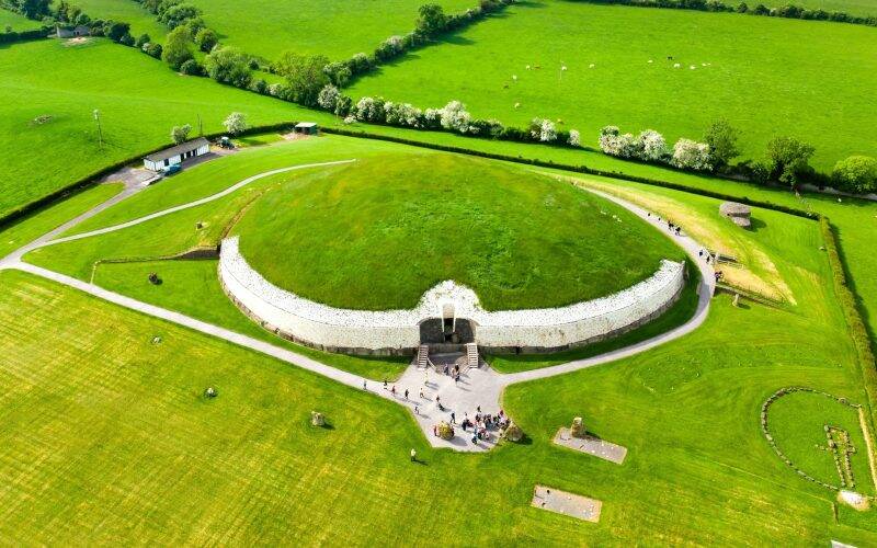 Newgrange is a prehistoric monument in Ireland, consisting of a large circular mound with an inner stone passageway and cruciform chamber. It is aligned so that the rising sun on the winter solstice shines through a "roofbox" above the entrance and floods the inner chamber. Several other passage tombs in Ireland are aligned with solstices and equinoxes.